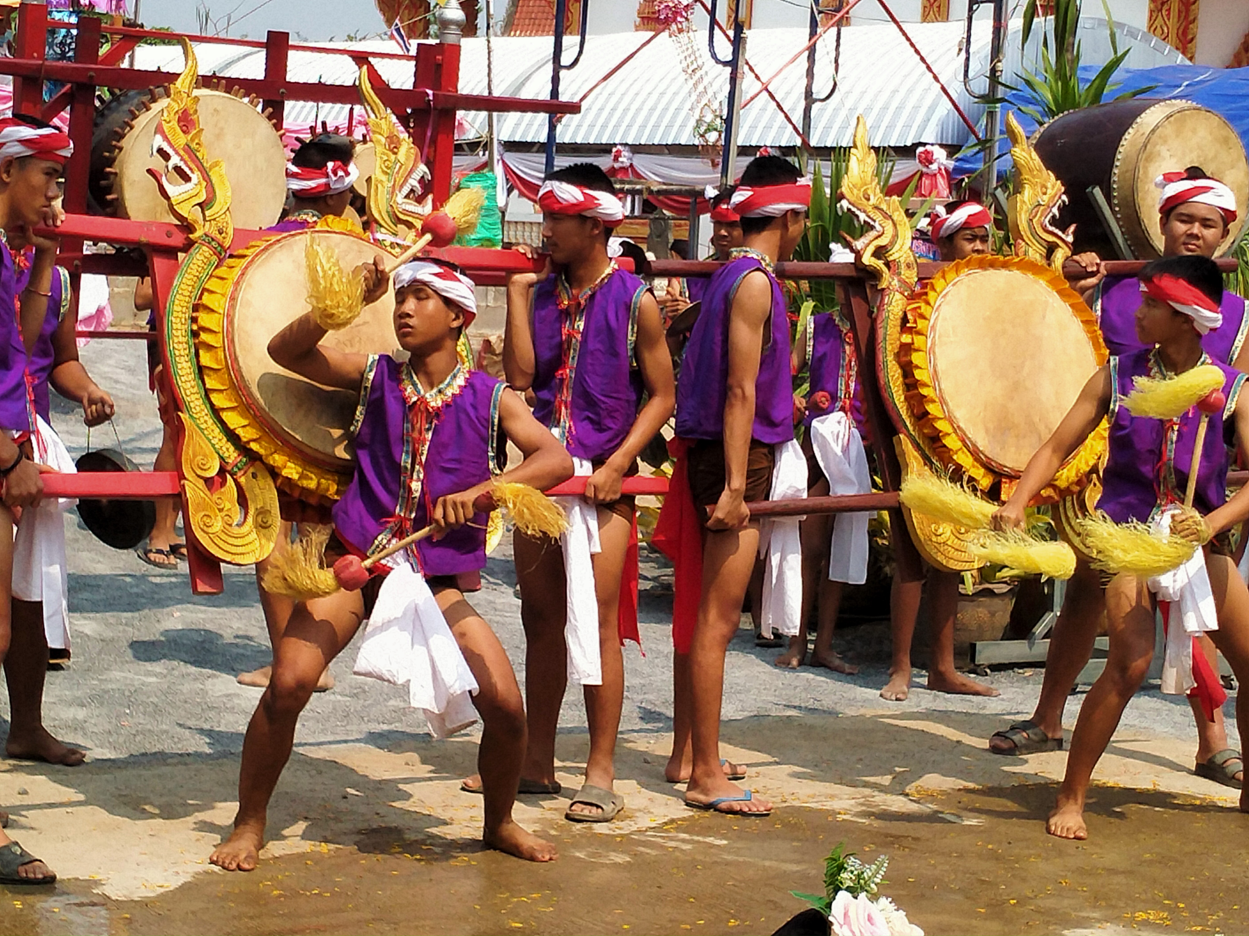 การตีกลองสะบัดชัยที่ถูกต้องตามแบบดั้งเดิมนั้นในปัจจุบันนี้หาชมได้ยาก แม้กระทั่งลักษณะของกลองสะบัดชัยที่นิยมในปัจจุบัน ก็ลดขนาดลงเหลือแต่กลองใบใหญ่โดยการตัดลูกตุบออกเพิ่มลายพญานาคยึดระหว่างคานหามให้เกิดความสวยงาม รูปแบบของการตีกลองสะบัดชัยนั้น ถึงแม้ว่าจะมีการเปลี่ยนแปลงไปบ้างแต่ก็ยังคงเอกลักษณ์ของเดิมไว้ หากไม่มีการพัฒนารูปแบบของการตีกลองสะบัดชัยอาจไม่ได้รับความสนใจเท่าที่ควร สำหรับขั้นตอนต่าง ๆ ในแต่ละพื้นที่ของภาคเหนือจะมีรูปแบบและลีลาที่แตกต่างกันออกไปเล็กน้อย แต่ยังคงเอกลักษณ์ของล้านนาดั้งเดิมอยู่ สำหรับในอำเภอทุ่งเสลี่ยมเดิมทียังไม่มีกลองสะบัดชัยอย่างที่เห็นในปัจจุบันมีเพียงกลองปูจาที่แขวนอยู่ตามหอกลองวัดต่าง ๆ เช่น วัดเหมืองนา วัดทุ่งเสลี่ยม
