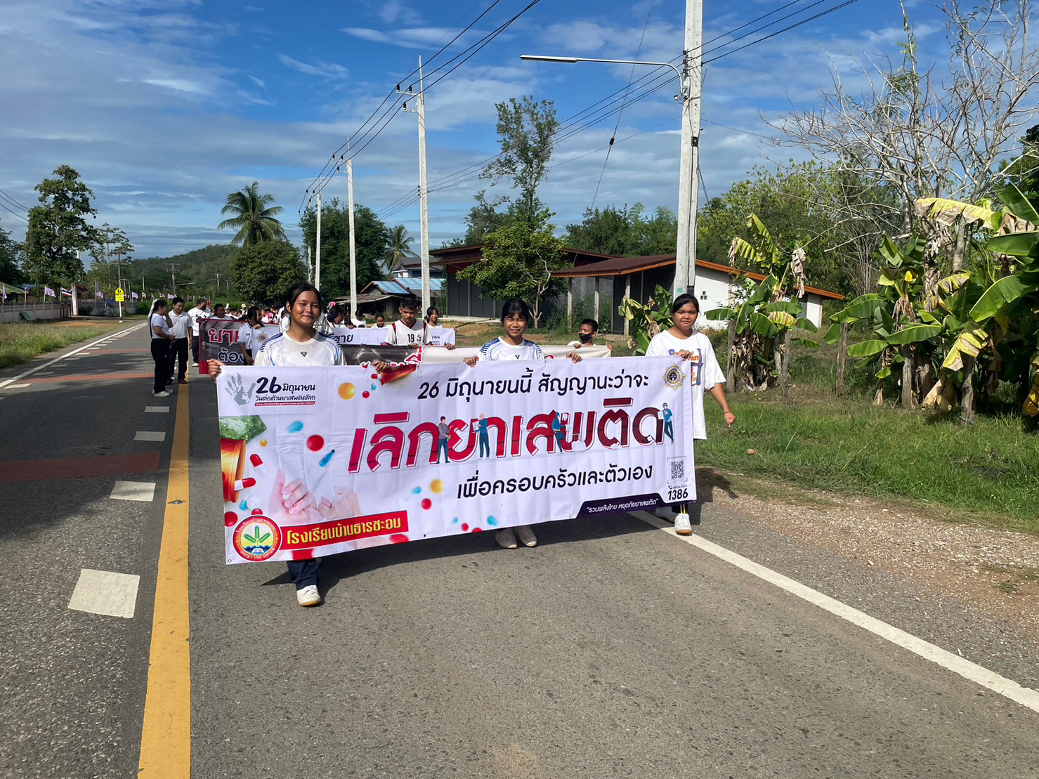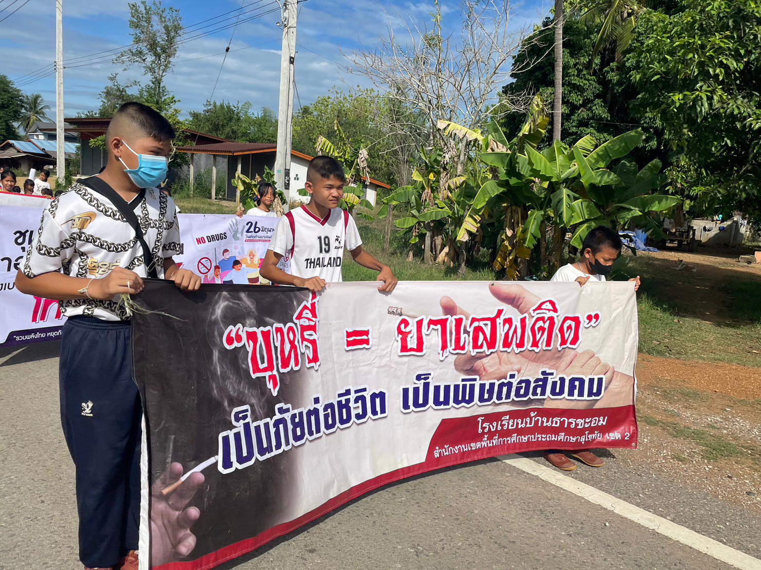 โรงเรียนบ้านธารชะอมร่วมรณรงค์เนื่องในวันต่อต้านยาเสพติด