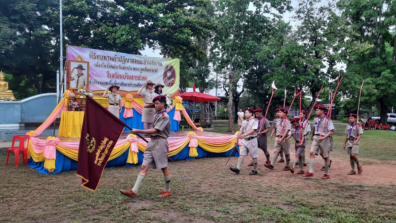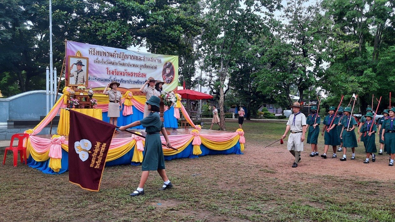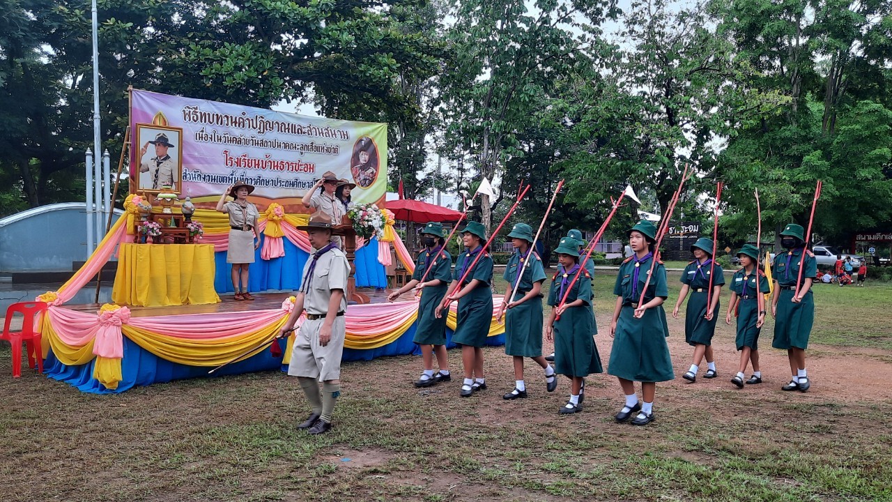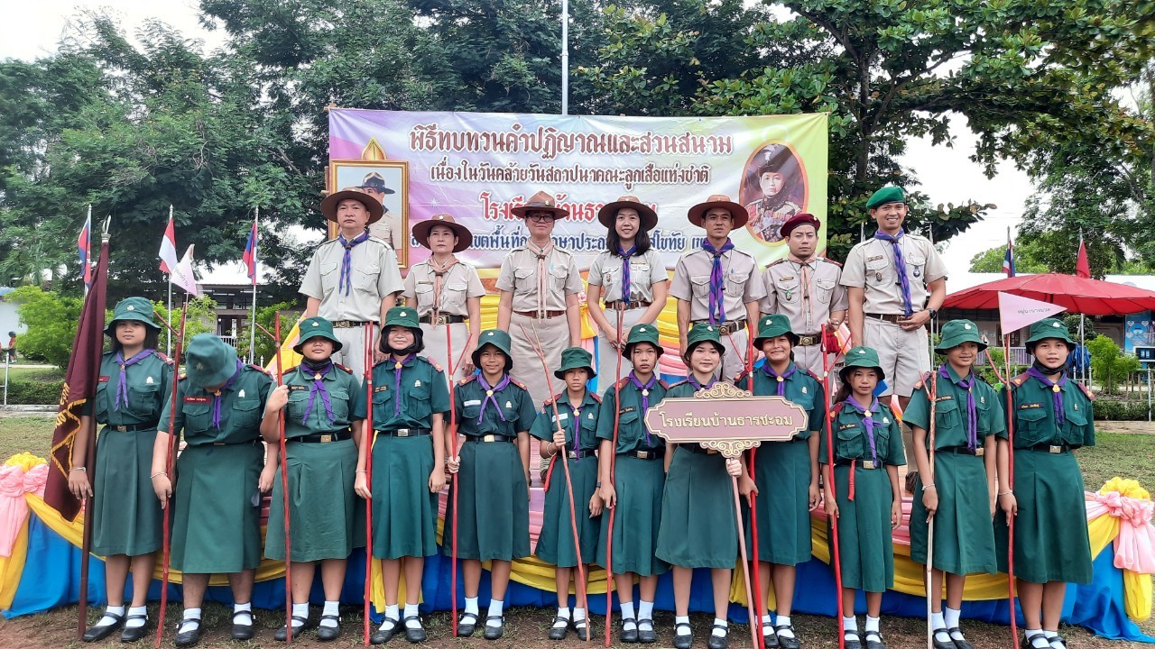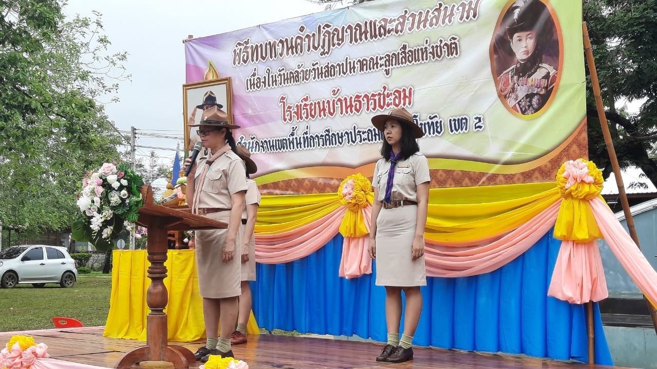 โรงเรียนบ้านธารชะอมจัดพิธีทบทวนคำปฏิญาณและสวนสนามลูกเสือเนตรนารี