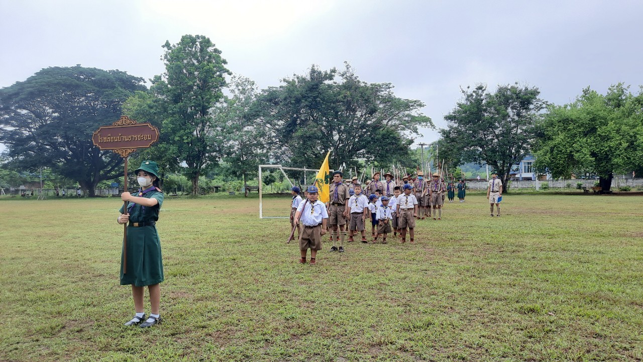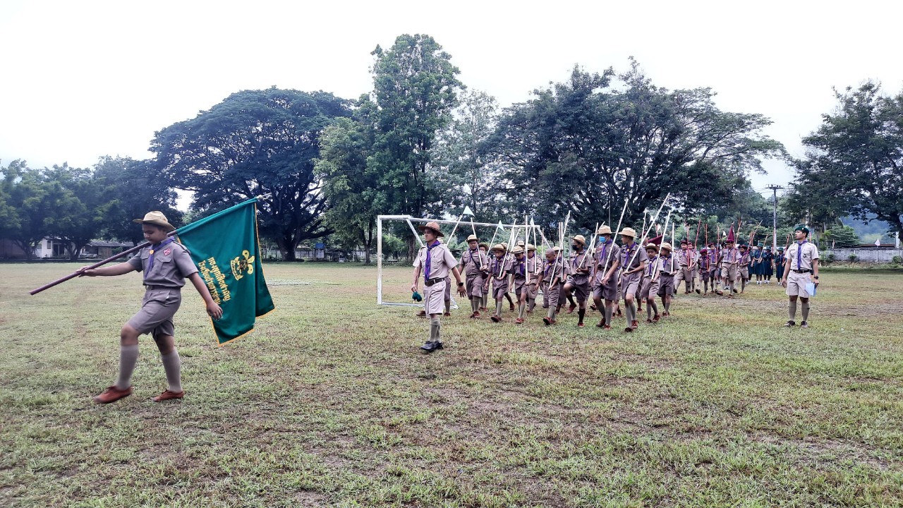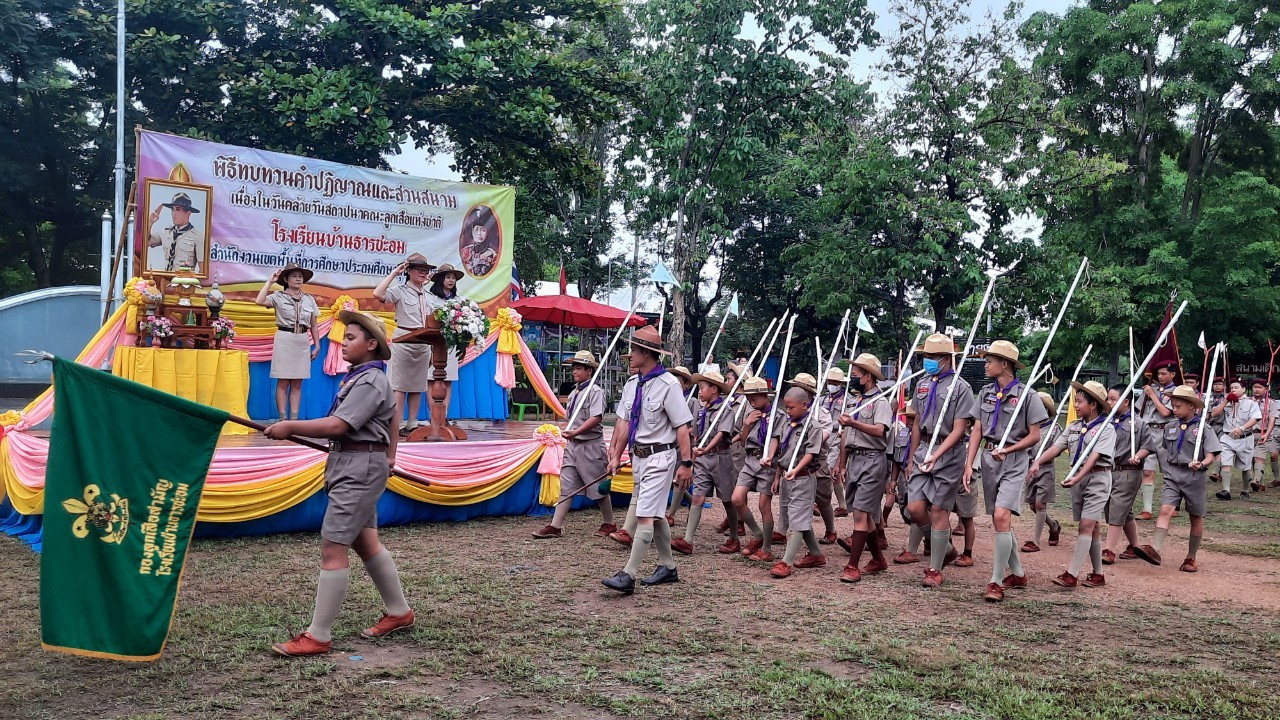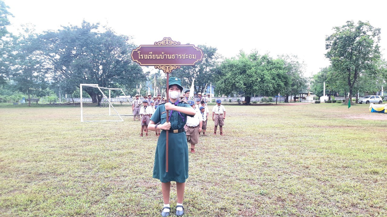 โรงเรียนบ้านธารชะอมจัดพิธีทบทวนคำปฏิญาณและสวนสนามลูกเสือเนตรนารี