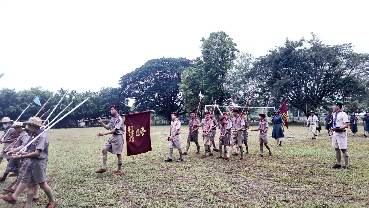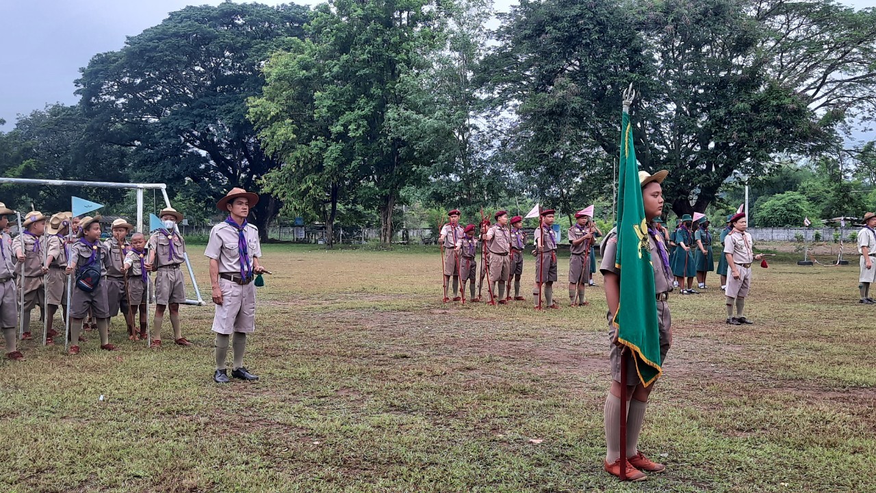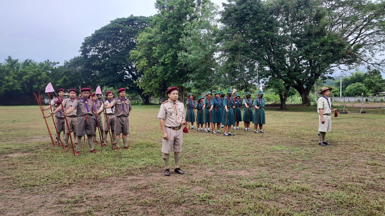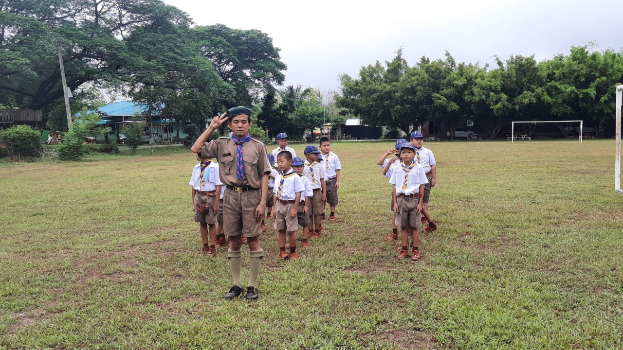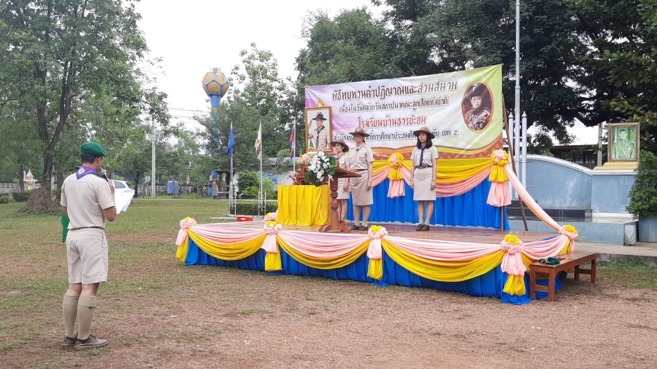 โรงเรียนบ้านธารชะอมจัดพิธีทบทวนคำปฏิญาณและสวนสนามลูกเสือเนตรนารี