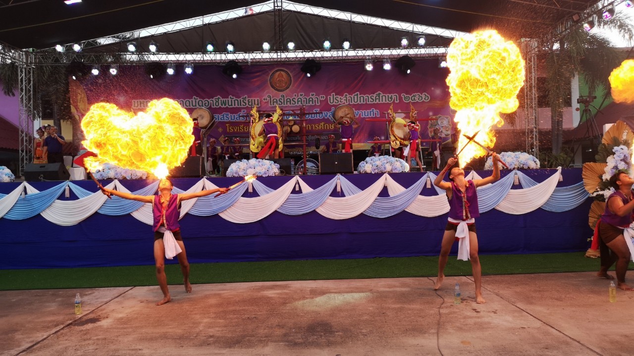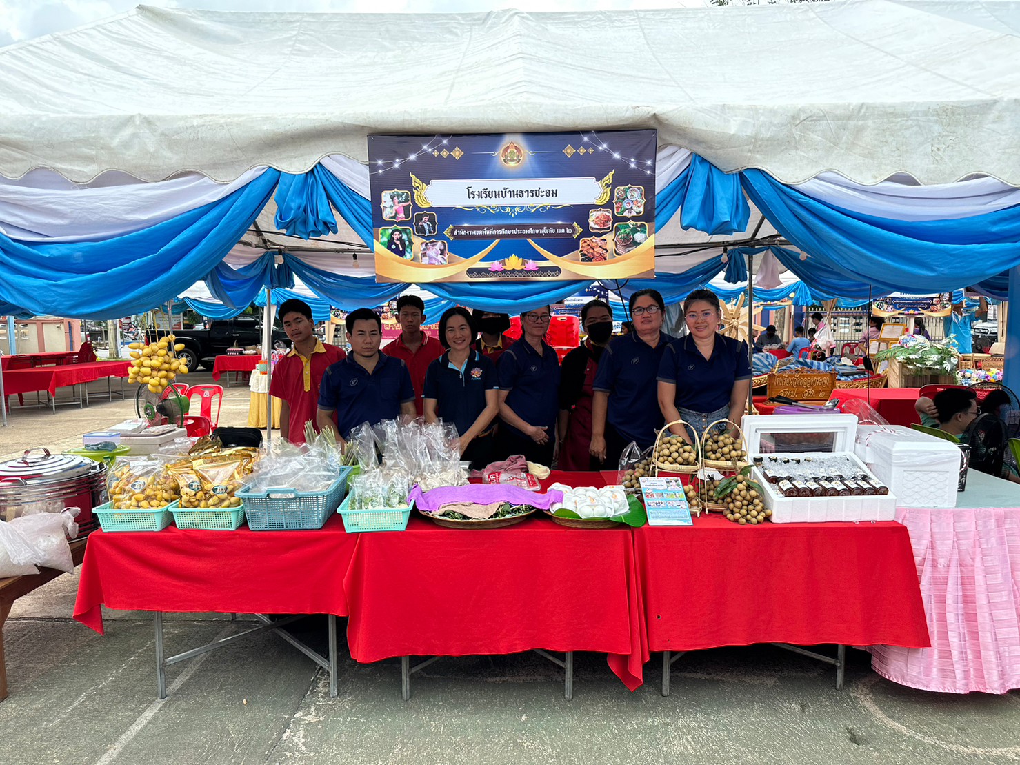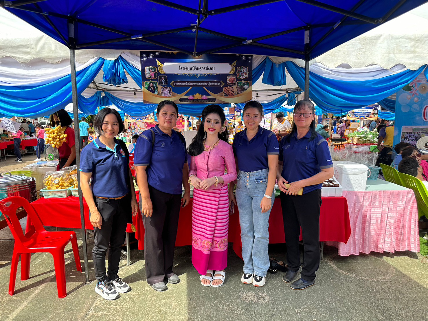 ในงานนี้โรงเรียนบ้านธารชะอม นำโดย ผอ.ประเทืองพร ล้วนงาม ได้นำคณะครูและนักเรียนเข้าร่วมกิจกรรมดังกล่าว โดยนำผลผลิตของโรงเรียนทั้งทางด้านการเกษตรและการฝึกอาชีพอื่น ๆ ซึ่งได้แก่ เห็ดนางฟ้า ผักชะอม ไข่เค็มสมุนไพร น้ำผลไม้ และไอศครีมโบราณ นำมาจำหน่ายในงานด้วย และงานนี้ยังมีการประกวดแม่ค้าตาคม โดยโรงเรียนบ้านธารชะอมได้ส่งเด็กหญิงปรียาภรณ์ อาสมาน เข้าร่วมประกวดด้วย และนอกจากนี้ยังมีกิจกรรมการแสดงกลองสะบัดชัยในพิธีเปิด สร้างความตื่นตาตื่นใจให้กับครูนักเรียนและผู้ที่เข้ามาเยี่ยมชมเป็นอย่างมาก