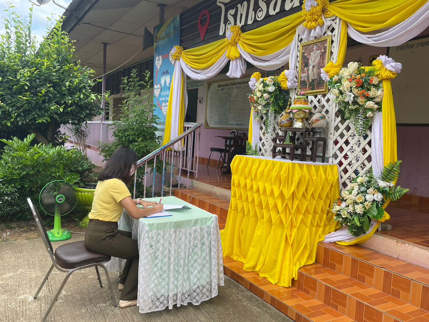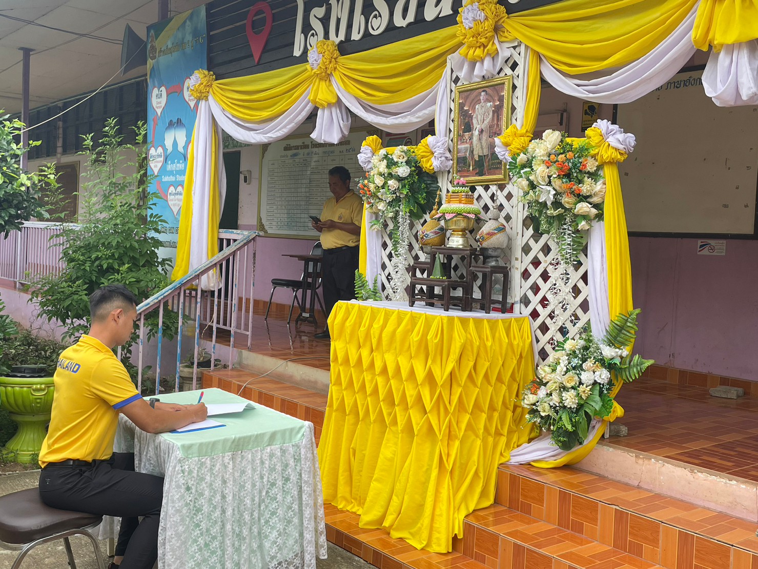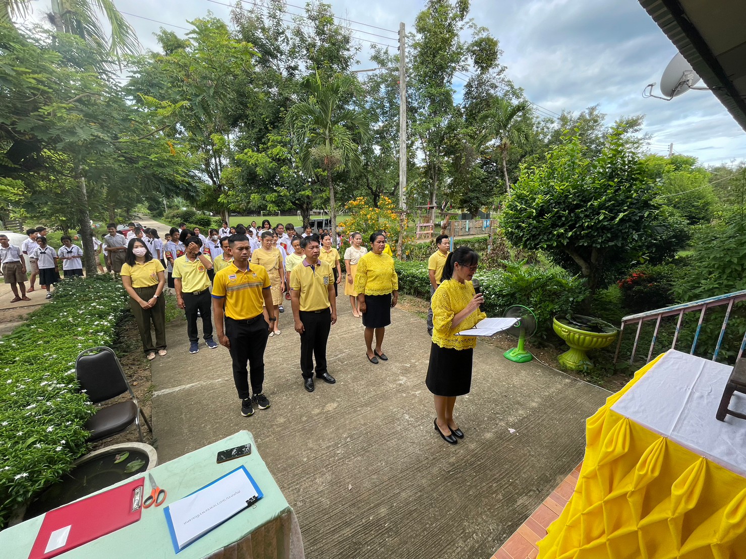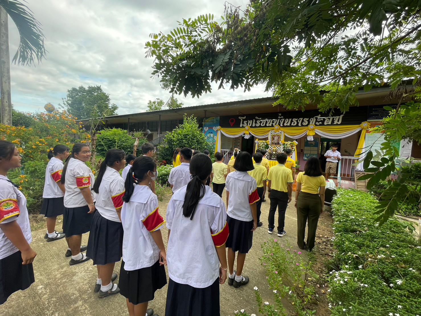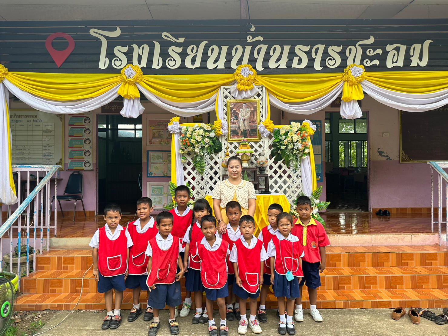 คณะครูและนักเรียนโรงเรียนบ้านธารชะอม ร่วมใจถวายพระพรเนื่องในวันเฉลิมพระชนมพรรษา