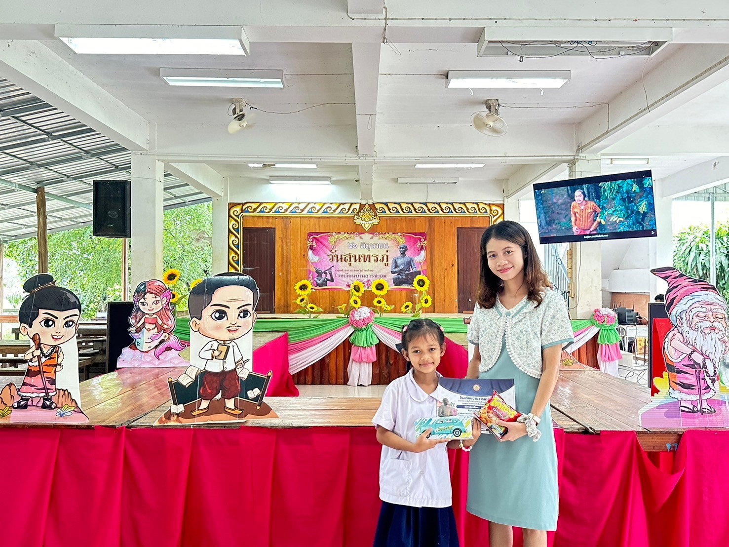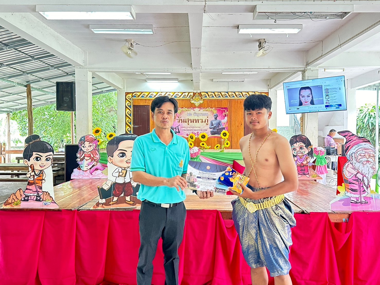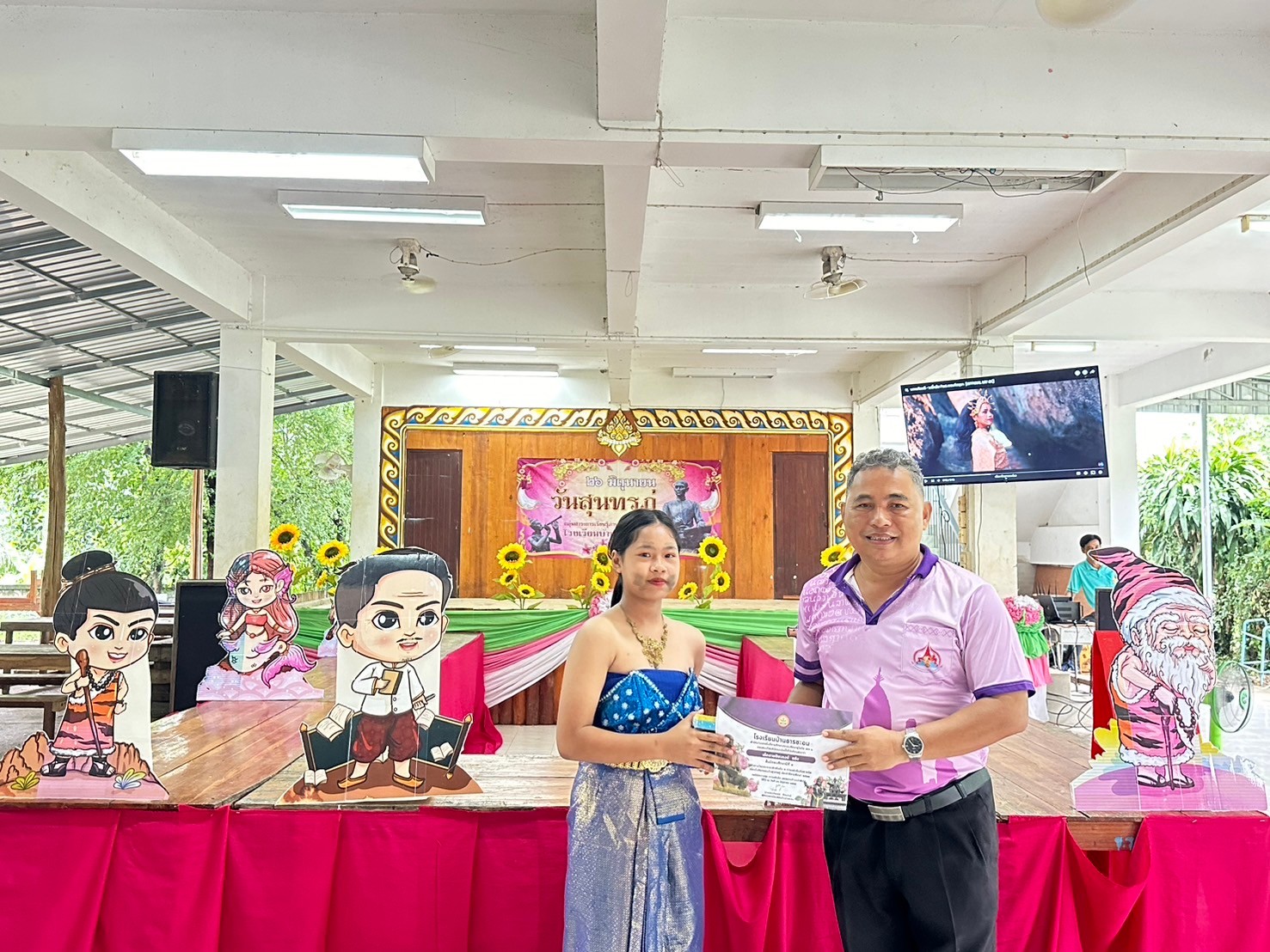 วันที่ 26 มิถุนายน 2567 โรงเรียนบ้านธารชะอมโดย ผอ.ประเทืองพร ล้วนงาม และกลุ่มสาระการเรียนรู้ภาษาไทยโดยนางสาวพิมพลอย สงเคราะห์ ครูกลุ่มสาระการเรียนรู้ภาษาไทย และคณะครูโรงเรียนบ้านธารชะอมได้ร่วมกันจัดงานที่ระลึกสุนทรภู่ประจำปีการศึกษา 2567 เพื่อเชิดชูเกียรติสุนทรภู่ กวีเอกของไทยและของโลก เพื่อส่งเสริมให้นักเรียนเป็นผู้กล้าแสดงออกในทางศิลปะการใช้ภาษา รักษ์ในภาษาไทย และเพื่อส่งเสริมให้เยาวชนรักษาภาษา เกิดความซาบซึ้ง ความภาคภูมิใจ และนําภาษามาประยุกต์ใช้ใน ชีวิตประจําวัน ในงานนี้มีการจัดมอบรางวัลให้กับผู้ที่ได้รับรางวัลในการประกวดคัดลายมือวาดภาพระบายสีในทุกระดับชั้น การจัดซุ้มเกมต่างๆ เกี่ยวกับวันสุนทรภู่ให้นักเรียนได้ร่วมกิจกรรมกันทุกคน การจัดเดินประกวดแฟชั่นวันสุนทรภู่โดยเน้นการประยุกต์ของที่มีและการรีไซเคิลหรือประดิษฐ์ชุดด้วยตนเอง เพื่อให้นักเรียนได้รู้จักใช้ความคิดสร้างสรรค์ในการสร้างงาน และการประยุกต์ใช้ศาสตร์วิชาอื่นๆเข้าในกิจกรรมในครั้งนี้