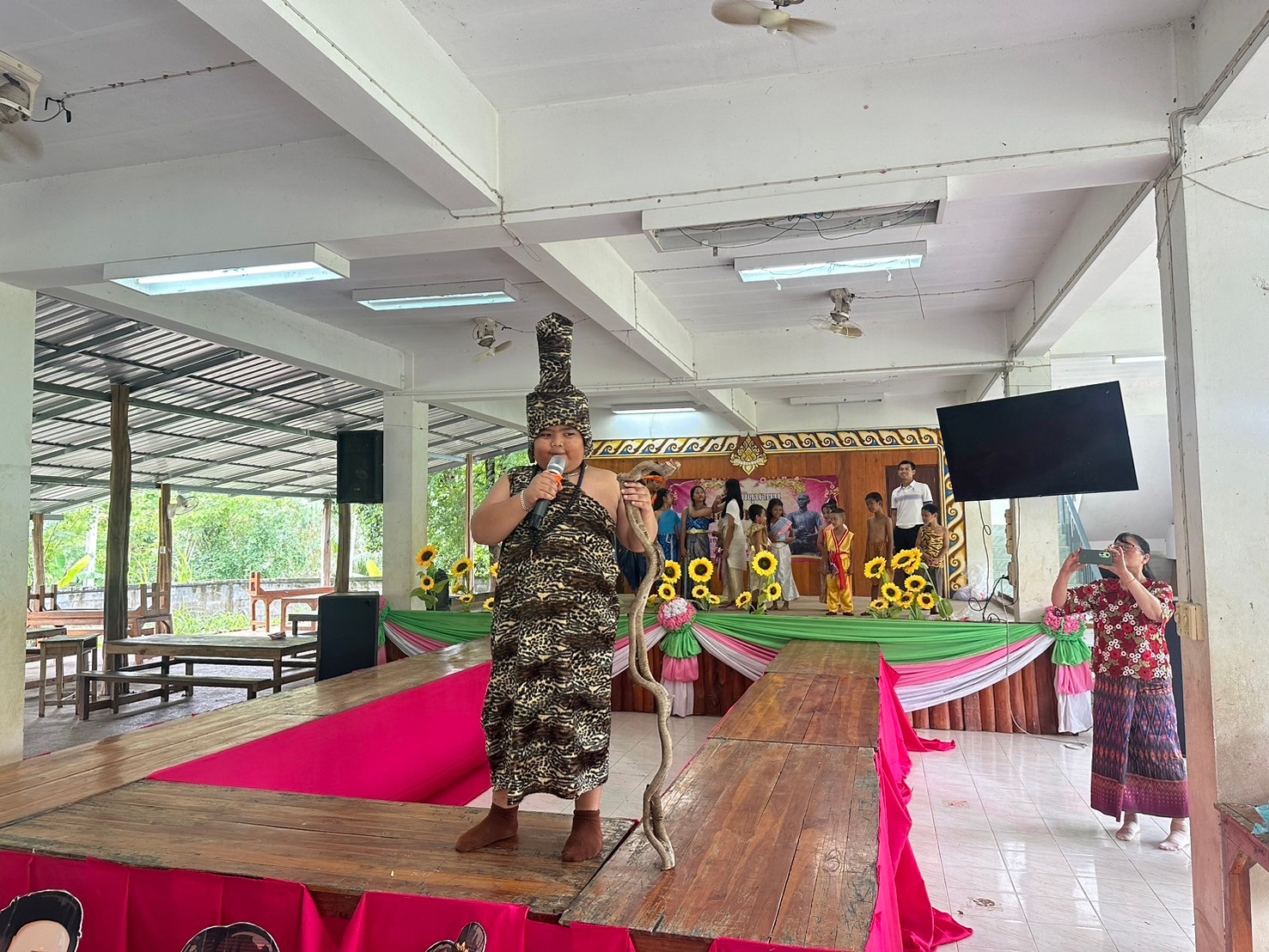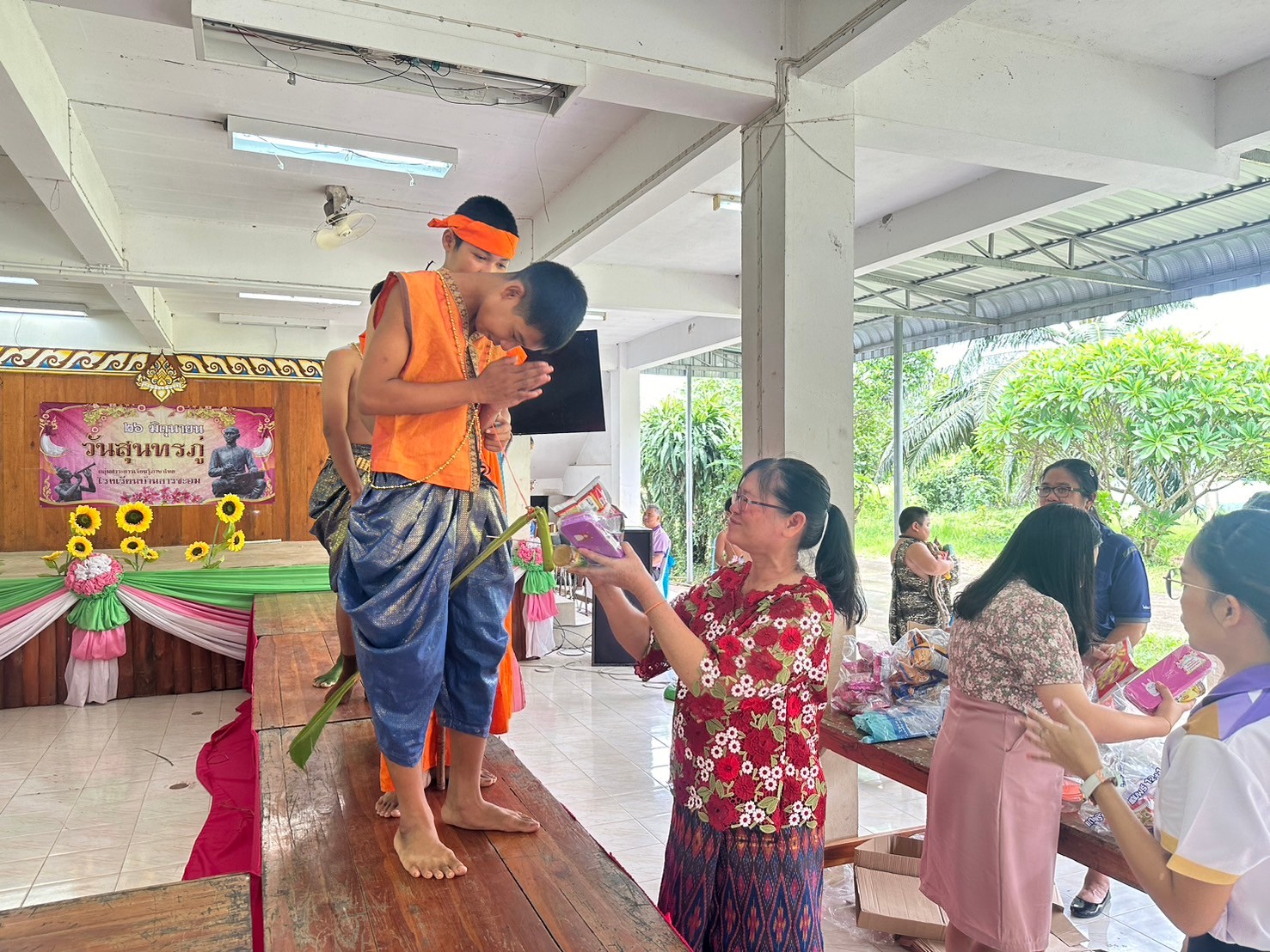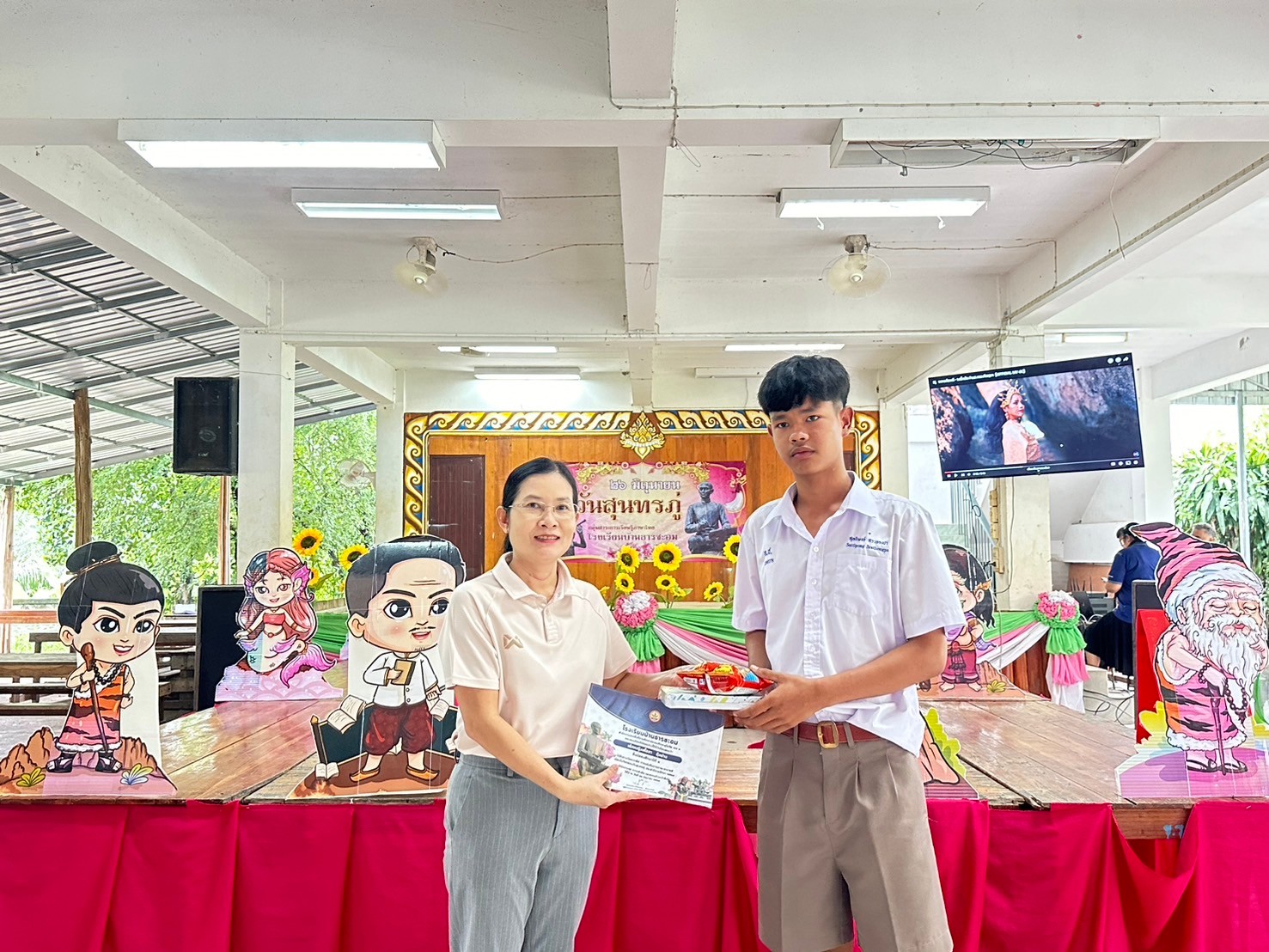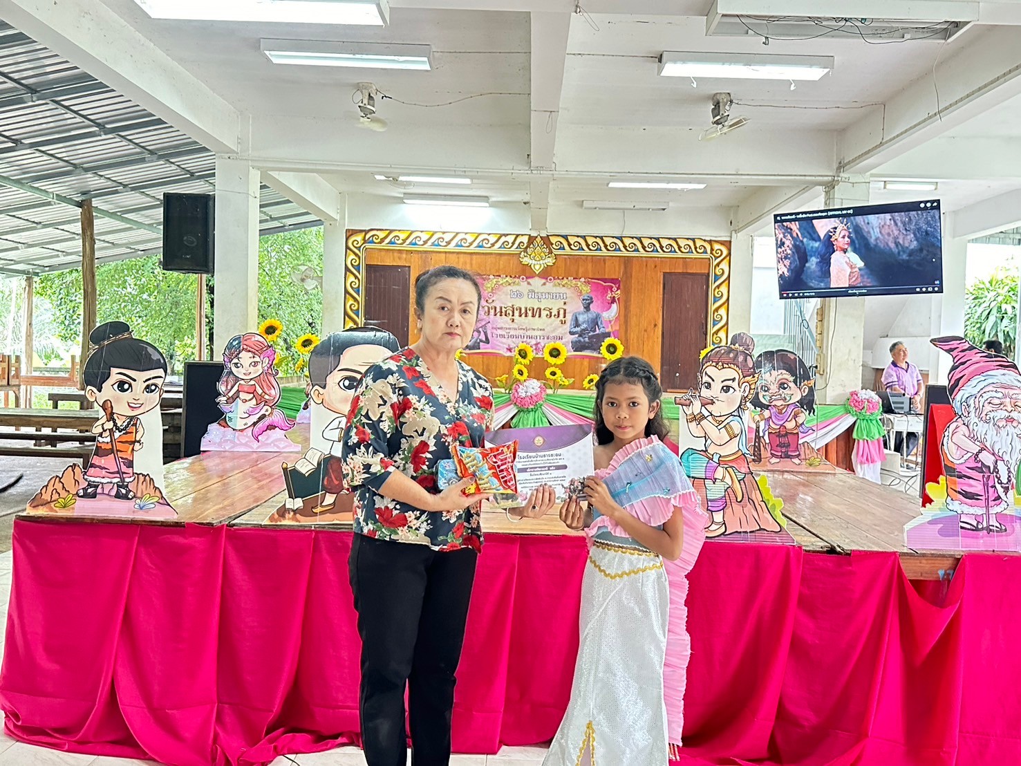 วันที่ 26 มิถุนายน 2567 โรงเรียนบ้านธารชะอมโดย ผอ.ประเทืองพร ล้วนงาม และกลุ่มสาระการเรียนรู้ภาษาไทยโดยนางสาวพิมพลอย สงเคราะห์ ครูกลุ่มสาระการเรียนรู้ภาษาไทย และคณะครูโรงเรียนบ้านธารชะอมได้ร่วมกันจัดงานที่ระลึกสุนทรภู่ประจำปีการศึกษา 2567 เพื่อเชิดชูเกียรติสุนทรภู่ กวีเอกของไทยและของโลก เพื่อส่งเสริมให้นักเรียนเป็นผู้กล้าแสดงออกในทางศิลปะการใช้ภาษา รักษ์ในภาษาไทย และเพื่อส่งเสริมให้เยาวชนรักษาภาษา เกิดความซาบซึ้ง ความภาคภูมิใจ และนําภาษามาประยุกต์ใช้ใน ชีวิตประจําวัน ในงานนี้มีการจัดมอบรางวัลให้กับผู้ที่ได้รับรางวัลในการประกวดคัดลายมือวาดภาพระบายสีในทุกระดับชั้น การจัดซุ้มเกมต่างๆ เกี่ยวกับวันสุนทรภู่ให้นักเรียนได้ร่วมกิจกรรมกันทุกคน การจัดเดินประกวดแฟชั่นวันสุนทรภู่โดยเน้นการประยุกต์ของที่มีและการรีไซเคิลหรือประดิษฐ์ชุดด้วยตนเอง เพื่อให้นักเรียนได้รู้จักใช้ความคิดสร้างสรรค์ในการสร้างงาน และการประยุกต์ใช้ศาสตร์วิชาอื่นๆเข้าในกิจกรรมในครั้งนี้