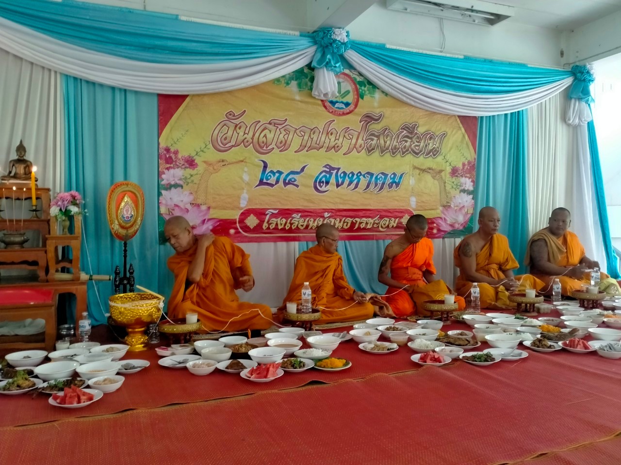 โรงเรียนบ้านธารชะอมจัดพิธีทำบุญตักบาตรเนื่องในวันคล้ายวันสถาปนาโรงเรียน ประจำปี 2567