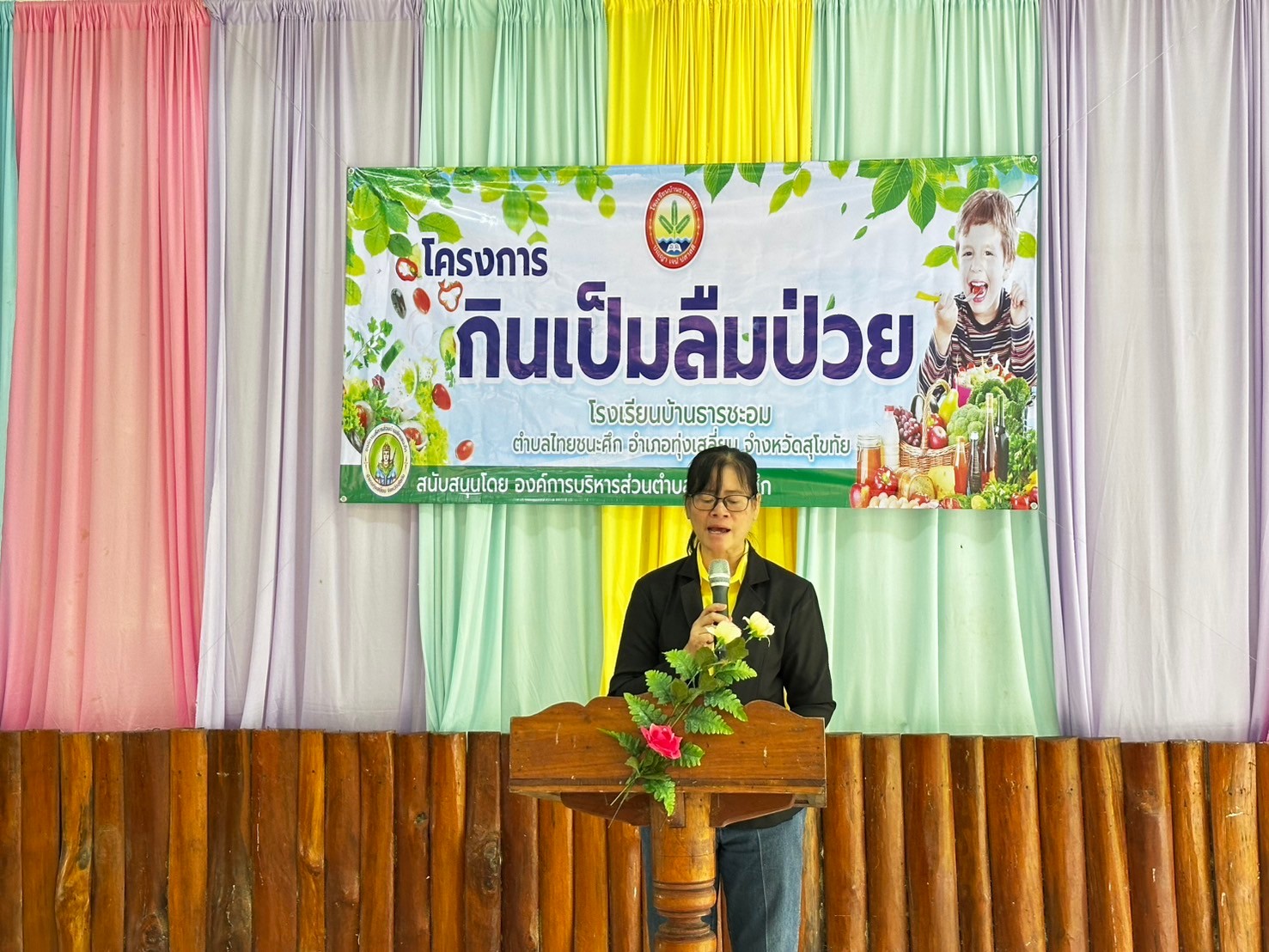 โรงเรียนบ้านธารชะอมจัดอบรมโครงการกินเป็นลืมป่วย
