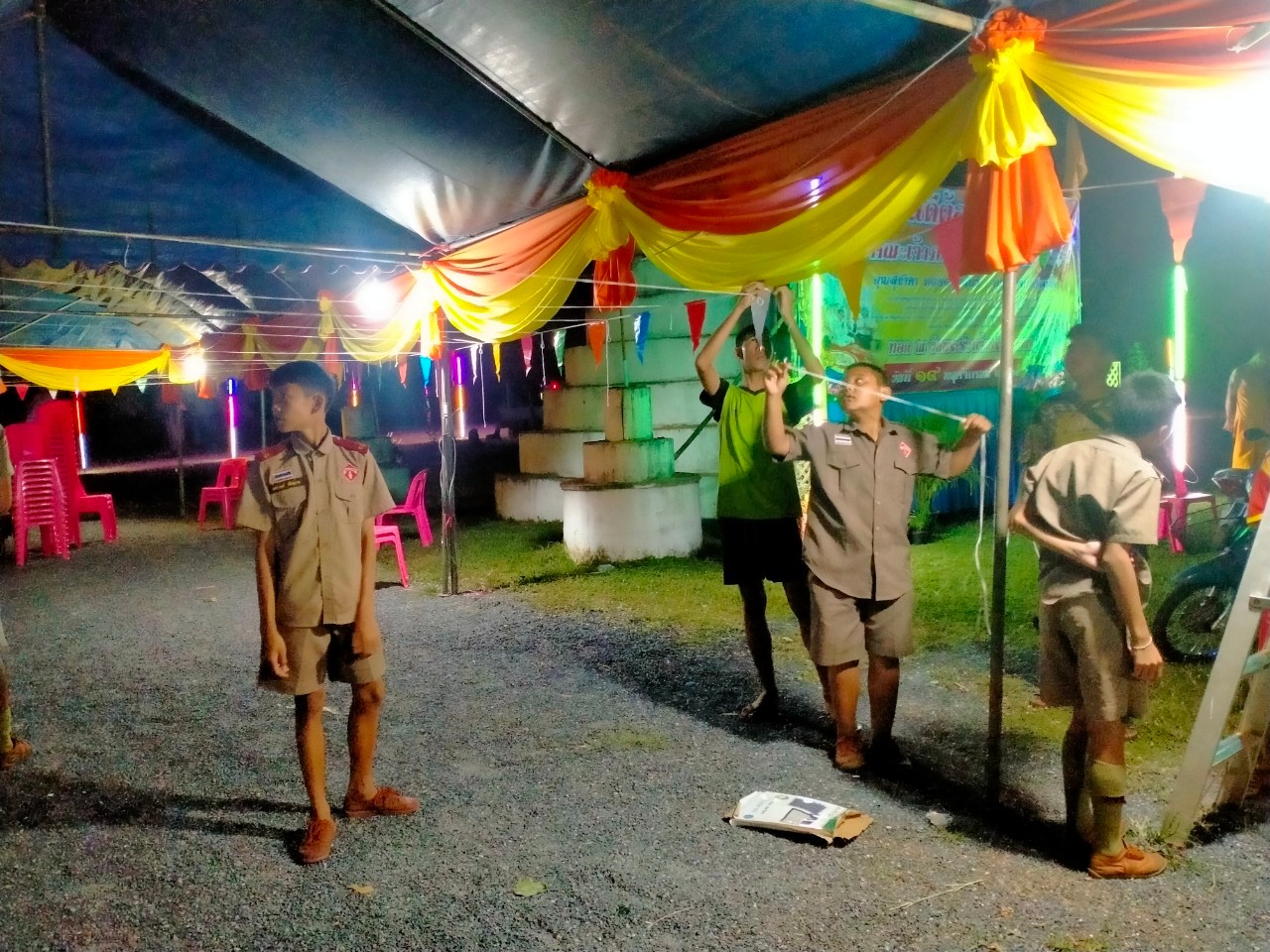 คณะครูและนักเรียนร่วมกันเตรียมงานทอดกฐินสามัคคีวัดหนองหญ้าปล้อง