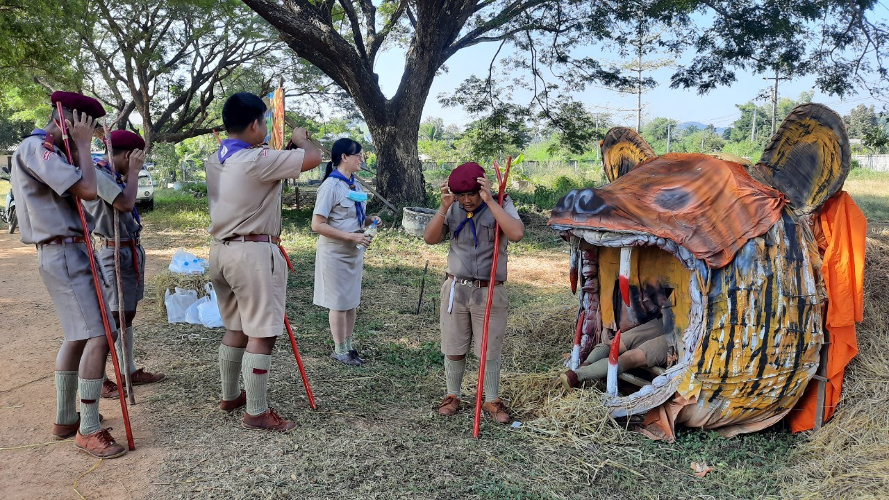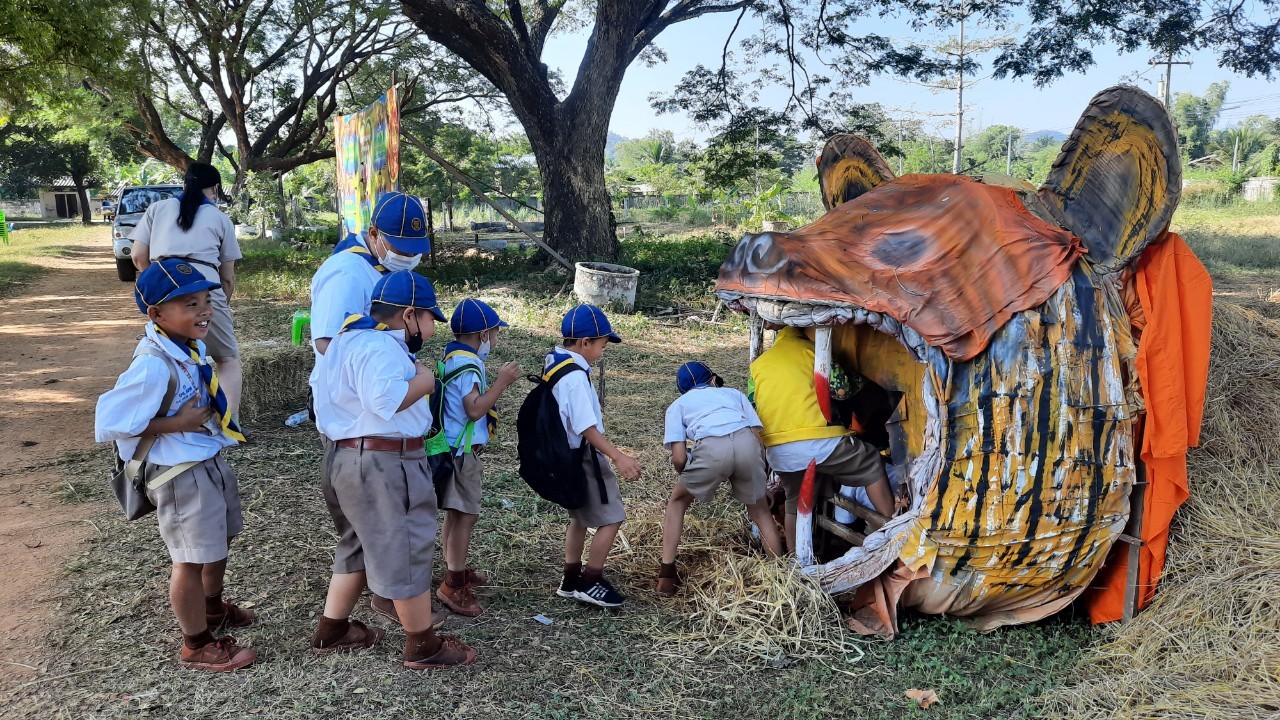 โรงเรียนบ้านธารชะอมจัดกิจกรรมการเดินทางไกลและการบุกเบิกลูกเสือ เนตรนารีและยุวกาชาด ประจำปีการศึกษา 2564